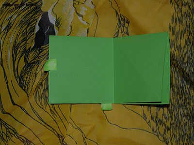 После того как мы загнули углы и развернули наш кармашек открытой частью вниз получив квадрат, мы загибаем нижние треугольники к центральной части, и верхний треугольник заворачиваем вниз, как показоно на фото.