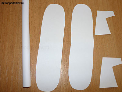 Вырезаем из бумаги полоску шириной 5см длинной 10-12 см. эту полоску скручиваем в рулончик и склеиваем клеем ПВА. Затем вырезаем крылья и хвост для самолета.
