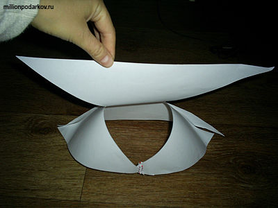Затем подогнем вперед два задних угла и закрепим их.