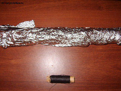 Для изготовления поделки из фольги для детей нам понадобится фольга. Можно взять как фольгу для запекания ,так и фольгу от конфет и шоколадок. Также нам понадобятся ножницы и нитки.