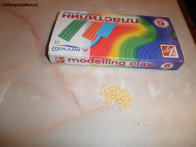 Для того, чтобы сделать вазу из пластилина лучше выбрать коричневый цвет. Из круп очень хорошо подойдет пшено.