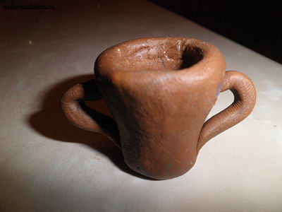 Из куска пластилина лепим вазу так, чтобы образовалось отверстие.