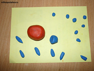 Попросите ребенка накатать шариков и колбасок. Один шарик должен быть большой, из него мы будем делать брюшко божьей коровке.