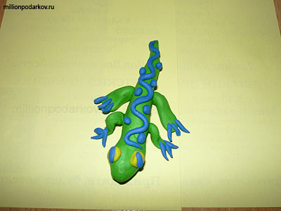 Соединяем детали вместе. Поделка из пластилина "Ящерка" готова!
