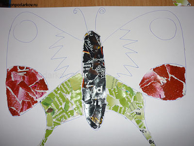 Поделки из порванной журнальной бумаги "Картинка-бабочка"