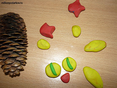 Для поделки из шишек сова нам потребуется еловая шишка и пластилин.