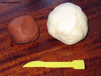 Основным материалом в данной работе будет соленое тесто, которое мы замесим из соли, воды и муки. Меньшую часть теста окрасим в коричневый цвет с помощью гуаши. Для украшения нам потребуется пряность гвоздика и акриловый лак.