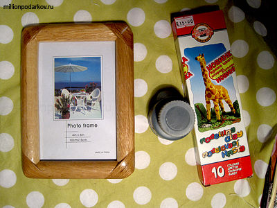 Подберите подходящую рамку. Пластилин подержите в теплом месте, чтоб он размягчился. Если вы не умеете красиво рисовать - можно распечатать подходящую картинку.