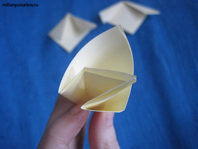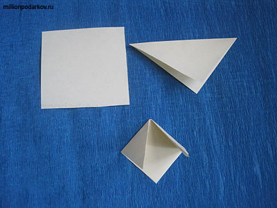 Сложите бумагу по диагонали, после опустите края к нижнему углу.