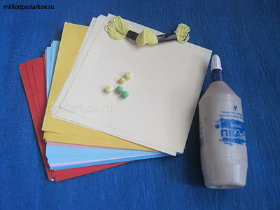 Приготовьте цветную бумагу. Нам нужно будет собрать 60 модулей из квадратов бумаги. Я взяла уже готовую бумагу для оригами - она порезана на квадраты.