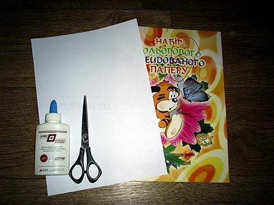 Для изготовления поделки приготовьте белую бумагу и бумагу желтого цвета, клей и ножницы.
