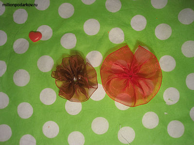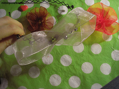 Сердечки поделки из органзы и пластика "Ободок праздничный"