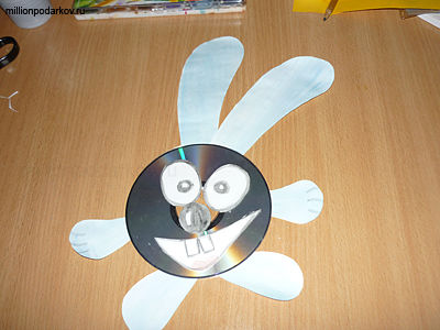 Когда детали высохнут от краски, приклеиваем их к диску. Поделка из компакт диска смешарик "Крош" готова!
