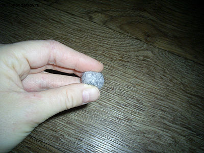 Берем маленький кусочек шерсти и скатываем из него плотный шарик. Наливаем в тазик горячую воду и разбавляем в ней жидкое мыло. Теперь берем наш шерстяной шарик и опускаем его в мыльный раствор. Начинаем катать шарик между ладонями. Сначала делаем это легко, и постепенно, как шерсть начнет сваливаться, сдавливаем его ладонями все сильнее.