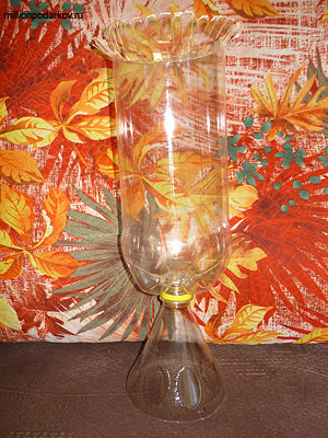 Нам осталось прикрепить ножку к вазе. Для этого нагреваем горлышко бутылки с помощью зажигалки, а затем приклеиваем его к дну бутылки. Расплавленный пластик будет играть роль клея и надежно скрепит конструкцию, главное хорошо нагреть и не медлить, когда вы будите приклеивать одну деталь к другой. Поделка ваза из пластиковой бутылки готова!